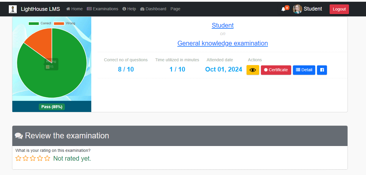 If the exam offers a certificate upon completion, you can view and download it by clicking on the "Certificate" button.