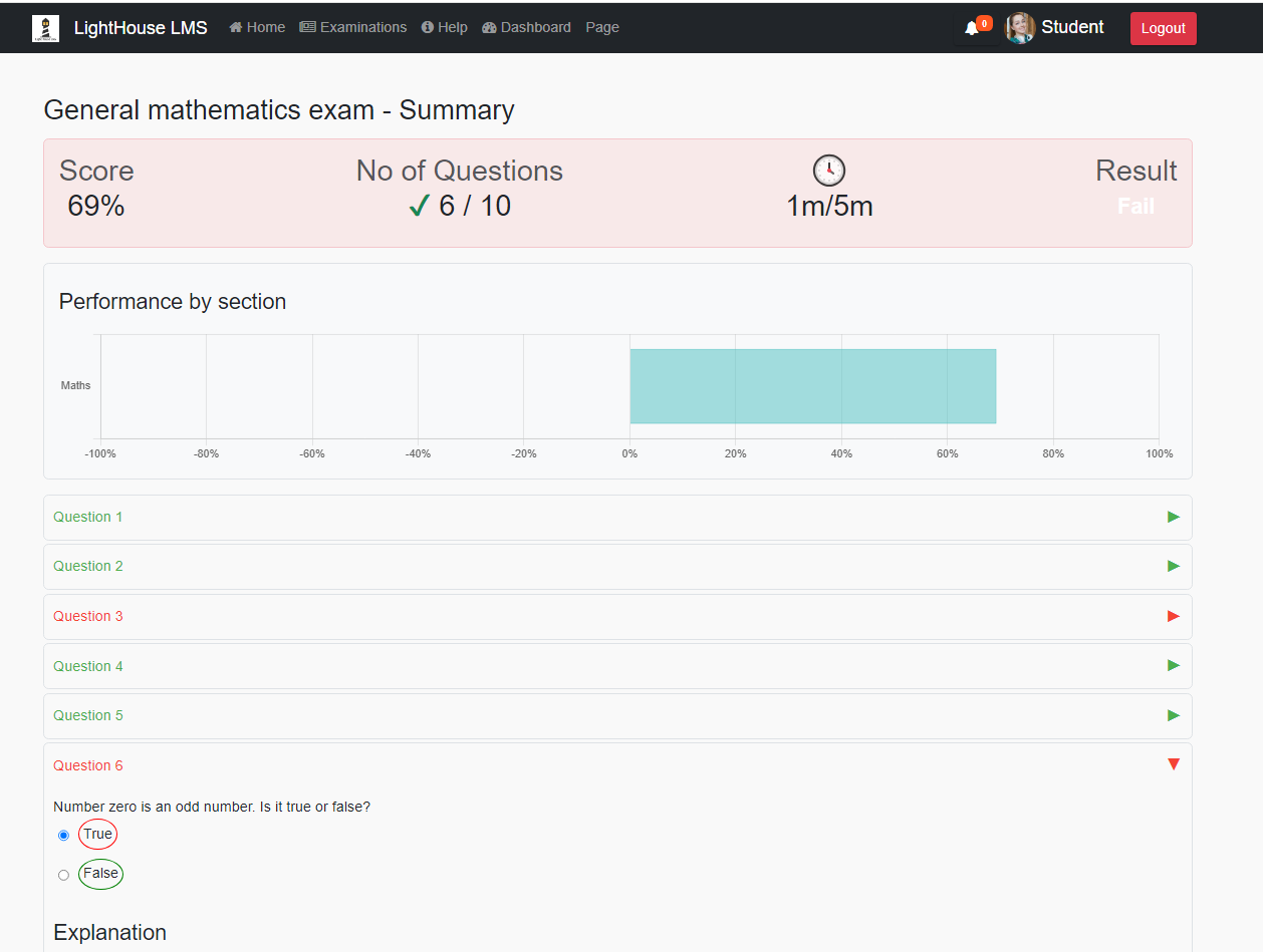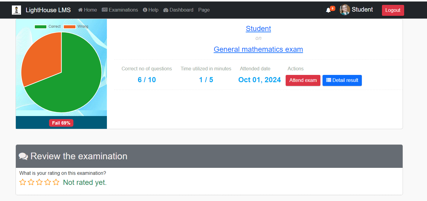 For detailed performance analysis, click on "View Details" to see a breakdown of your exam scores, including correct and incorrect answers.