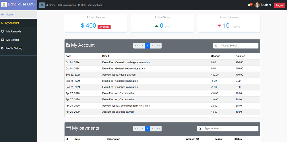 You are allowed to attend paid examinations once you have enough credit for the given examinations.