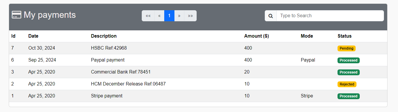 You can see your payment status in the Account landing page under My Payments.